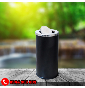 - Thùng rác inox tiền sảnh nắp bập bênh có dạng hình trụ, kết hợp với sự sáng bóng của chất liệu khiên cho tổng thể vô cùng bắt mắt.